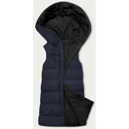 Tmavo modro-čierna obojstranná dlhá dámska vesta (V723)