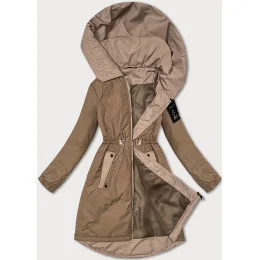 Tmavobéžová dámska bunda so šnúrkou v páse S'West (B8352-12)