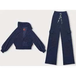 Tmavomodrý casual komplet s nohavicami typu cargo (AMG-338A)
