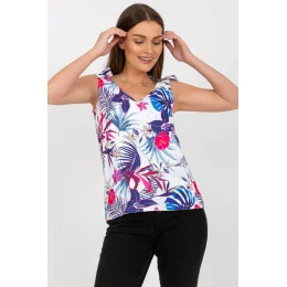 Rovno strihaný top s výstrihom do V. Ramienka hornej časti s ozdobnými väzbami. Skvele sa hodí na mnoho príležitostí.