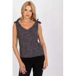 Rovno strihaný top s výstrihom do V. Ramienka hornej časti s ozdobnými väzbami. Skvele sa hodí na mnoho príležitostí.