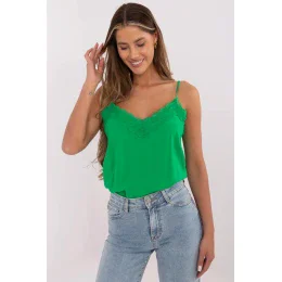 Stylové dámské triko v casual stylu je ideální volbou na letní dny nebo jako základ pro lehké vrstvy a saka. Vyrobené z převažující viskózy, je mimořádně měkké, prodyšné a šetrné k pokožce. Model patří do řady ekologického oblečení, je to uvědomělý výběr pro ženy, které si cení módy v souladu se životním prostředím. Tričko má hladký, jednotný vzor, který mu dodává univerzální charakter. Standardní délka z něj činí skvělý doplněk jak k džínům, tak k sukním. Nastavitelná ramínka umožňují ideální přizpůsobení délky a zajišťují maximální pohodlí při nošení. Jemný výstřih do V je dokončen ozdobnou krajkou, která tričku dodává jemný, ženský půvab. Jedná se o nadčasový model, který se osvědčí v mnoha každodenních stylizacích - od volných po více elegantní.