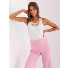 Ecru rebrovaný top s čipkou OCH BELLA .