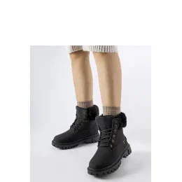 Čierne traperky Alberta s ozdobnou kožušinou sú ideálnou obuvou na chladné zimné dni. Sú vyrobené z ekologickej kože a majú zateplenie, ktoré poskytuje pohodlie a teplo počas celého dňa. Ich výška nad členkom chráni pred vetrom a chladom a ozdobná kožušina im dodáva jedinečný šarm. Šnurovacie zapínanie zaručuje ideálne prispôsobenie sa nohe. Tieto elegantné traperky budú skvelým doplnkom vášho jesenného/zimného šatníka bez ohľadu na príležitosť.
