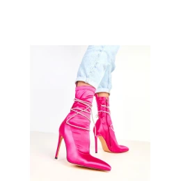 Jedinečné dámske čižmy z elegantnej saténovej tkaniny, ktoré pútajú pozornosť vďaka ozdobným šnúrkam zdobeným zirkónmi. Strieborný špicatý nos a úzky 12 cm ihličkový podpätok dodávajú celku zmyselný a luxusný charakter. Model má 21 cm zvršok, ktorý krásne zvýrazňuje líniu chodidla, a praktický zips zabezpečuje pohodlné obúvanie. Vnútro je vybavené mäkkou tkaninou bez dodatočného vystuženia, vďaka čomu sú ideálnou voľbou na jarno-letnú sezónu alebo elegantné udalosti. Sú to efektné a lesklé čižmy, ktoré dokonale doplnia večerný outfit a dodajú mu eleganciu a oslnivý charakter.