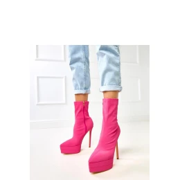 Elegantné dámske čižmy zo saténu, ktoré sa vyznačujú luxusným leskom a ženským charakterom. Model má štíhly špicatý nos, 15,5-centimetrový kolíkový podpätok a 4,5-centimetrovú platformu, ktorá zaručuje efektné zúženie postavy pri zachovaní stability. 16 cm vysoký zvršok krásne zvýrazňuje líniu nôh a praktické zapínanie na zips uľahčuje obúvanie. Vnútro je vybavené látkou a absencia vnútorného polstrovania zaručuje, že čižmy budú ideálne na jarnú a letnú sezónu alebo večerné udalosti. Ide o efektný a elegantný model, ktorý dodá eleganciu večerným a módnym stylingom a priťahuje pohľady jemným leskom saténu.