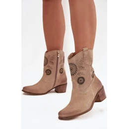Dámske členkové čižmy z prírodného semišu sú elegantnou a štýlovou voľbou na prechodné ročné obdobia a teplejšie jesenné dni. Jemný ažurový vzor dodáva celku ľahkosť a jedinečný charakter. Model je umiestnený na stabilnom podpätku v tvare kvádra, ktorý poskytuje pohodlie pri chôdzi a jemne zvýrazňuje postavu. Špička má mandľový tvar. Vďaka zapínaniu na zips sa ľahko obúvajú a vyzúvajú, čo zaručuje pohodlie pri každodennom nosení. Ide o členkové čižmy, ktoré dokonale doplnia každodenné aj elegantné oblečenie a dodajú mu jemnú eleganciu a módny charakter.