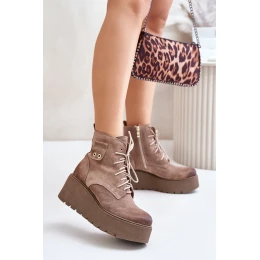 Tieto dámske čižmy z prírodného semišu sú štýlovou voľbou na chladnejšie dni. Stoja na pevnej platforme s ihličkovým podpätkom a poskytujú pohodlie a stabilitu. Zips na bočnej strane zvršku uľahčuje ich obúvanie a spevnená päta. Vnútro s plstenou podšívkou zaručuje teplo a ozdobný prvok na zvršku podčiarkuje ich jedinečný charakter. Tento model bude dokonalým doplnkom k rôznym štylizáciám.