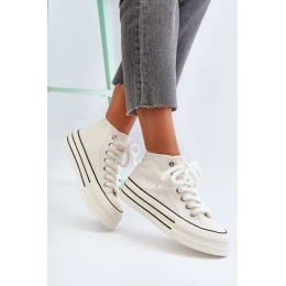 Trampki damskie wykonane z materiału tekstylnego. Masywna platforma z gumowego tworzywa dodaje im modnego wyglądu oraz zapewnia stabilność podczas chodzenia. Zaokrąglone noski oraz klasyczne sznurowanie sprawiają, że są uniwersalnym dodatkiem do wielu casualowych stylizacji. Niezależnie od tego, czy idziesz na spacer po mieście czy spotkanie ze znajomymi, te trampki będą doskonałym wyborem. Przy wyborze rozmiaru prosimy sugerować się tabelą rozmiarów.