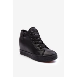 Trampki Skórzane Damskie Na Koturnie Big Star MM274001 Czarne