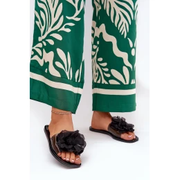 Transparentne Płaskie Klapki Damskie Ze Sztucznym Kwiatem Czarne Vobetta
