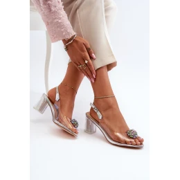 Transparentne Sandały Na Słupku z Ozdobą Srebrne D&A MR38-454
