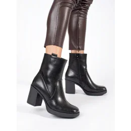 Trendy čierne členkové topánky pre ženy na širokom podpätku