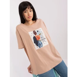 Béžové tričko s potlačou a okrúhlym výstrihom.