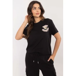Dámske tričko klasického strihu, vyrobené z kvalitnej bavlny, ktorá zaručuje pohodlné nosenie. Prednú časť zdobí decentná potlač s nápismi, ktorá dodáva tričku módny a minimalistický charakter. Zadnú stranu zdobí dekoratívna potlač v kombinácii s dynamickými nápismi, ktorá dodáva celku originálny výraz. Model so strednou dĺžkou, krátkymi rukávmi a okrúhlym výstrihom sa dokonale hodí do každodenného oblečenia. Ideálna voľba pre ženy, ktoré ocenia pohodlie a štýl v jednom.