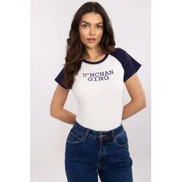 Toto dámske tričko v ležérnom štýle spája pohodlie a módny dizajn. Je vyrobené z mäkkej rebrovanej bavlny s prídavkom elastanu, poskytuje pohodlné nosenie a dokonale sa prispôsobí postave. Klasický okrúhly výstrih a krátke rukávy sú vyrobené z kontrastného materiálu, ktorý dodáva tričku jedinečný charakter. Na prednej strane je štýlová potlač s nápismi, ktoré zdôrazňujú moderný a uvoľnený štýl. Vďaka štandardnej dĺžke je skvelým doplnkom k džínsom aj sukniam a tvorí univerzálny základ pre každodenné oblečenie.
