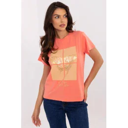 Ľahké a pohodlné dámske tričko, ideálne na každodenné príležitosti. Je vyrobené z prevažujúcej zmesi bavlny a elastanu a poskytuje pohodlie a voľnosť pohybu. Model štandardnej dĺžky s krátkymi rukávmi a klasickým okrúhlym výstrihom sa dokonale hodí do každodenného štýlu. Tričko zdobia nápadité aplikácie, flitre v tvare motýľa, ktoré priťahujú pozornosť a dodávajú celku módny charakter. Dominantný vzor v kombinácii s jemnou potlačou vytvára zaujímavý a zároveň univerzálny vzhľad.