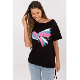S týmto jedinečným dámskym tričkom v ležérnom štýle dodáte svojmu každodennému outfitu trochu lesku. Je vyrobené z príjemnej bavlny s prídavkom elastanu, takže poskytuje pohodlie a ľahko sa prispôsobí postave. Vďaka klasickej dĺžke, krátkym rukávom a okrúhlemu výstrihu je toto tričko ideálne na každodenné nosenie, do práce, na prechádzku alebo na stretnutie s priateľmi. Jeho jedinečný charakter podčiarkuje nápaditá aplikácia na prednej strane, ktorá kombinuje potlač, výšivku a flitre, čím celku dodáva moderný a ženský vzhľad. Ďalším akcentom je šnúrka na ľavej strane v spodnej časti, ktorá dodáva ľahkosť a jemnú originalitu. Toto tričko je dokonalou kombináciou pohodlia a štýlu, ktorá nesmie chýbať vo vašom šatníku!