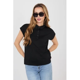 Dámské polo triko s klasickou délkou je skvělou kombinací pohodlí a nadčasového stylu. Model se zapínáním na tři knoflíky umožňuje upravit výstřih a dodává celku decentní sportovní charakter. Klasický límec zdůrazňuje elegantní a zároveň uvolněný vzhled. Tričko je v casual stylu, díky čemuž se skvěle hodí na běžné nošení do práce, na procházku nebo setkání s přáteli. Hladký, minimalistický vzor z ní činí univerzální základ pro mnoho stylizací. Vyrobeno z kombinace viskózy a polyesteru, poskytuje příjemnou měkkost, lehkost a dobrou trvanlivost materiálu. Krátký rukáv a pohodlný střih zaručují pohodlí po celý den. Ideální volba pro ženy, které ocení jednoduchost, funkčnost a klasický styl v moderním provedení.