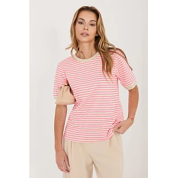 Dámske tričko s prúžkami je klasický ležérny dizajn, ktorý je ideálny na každodenné nosenie. Nadčasový vzor mu dodáva univerzálny charakter, vďaka čomu sa skvele hodí na mnohé štýly, či už k džínsom, sukni alebo šortkám. Vďaka štandardnej dĺžke, krátkym rukávom a okrúhlemu výstrihu poskytuje tento model pohodlie a voľnosť pohybu. Je vyrobené z mäkkej, priedušnej bavlny, je príjemné na pokožku a skvelé na každodenné nosenie. Je to základ šatníka, ktorý spája pohodlie s jednoduchým, štýlovým vzhľadom.