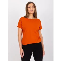 Ciemnopomarańczowy damski t-shirt Fire . Moda na ubrania basic nabiera tempa, dlatego najwyższy czas dokupić kilka takich modnych koszulek do swojej kolekcji. Tutaj proponujemy Ci stylowy t-shirt z dekoltem w łódkę oraz trójkątnym wycięciem na plecach, który super podkręci każdą codzienną stylizację i wygląda bardzo kobieco na sylwetce. Zwróć uwagę na prosty i wartościowy skład materiałowy, z którego zrobiono ten t-shirt. Przewiewna i oddychająca bawełna w połączeniu z domieszką elastanu jest miękka w dotyku i oddychająca, a także przyjazna w kontakcie ze skórą. Dzięki temu koszulka jest bardzo wygodna, świetnie się nosi i doskonale układa się na ciele, dlatego jest idealnym elementem codziennych zestawów. Założysz ją do swoich ulubionych stylizacji, które mogą być utrzymane zarówno w sportowym, jak i bardziej kobiecym wydaniu, w zależności od doboru dodatków i butów. Nie zwlekaj dłużej tylko kup najmodniejszy t-shirt basic do swojej kolekcji, żeby móc two