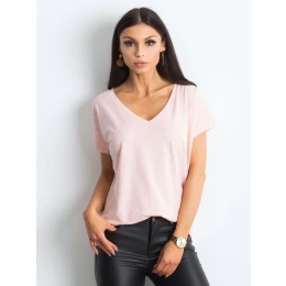Melanžové tričko s výstrihom do V v svetloružovej farbe.