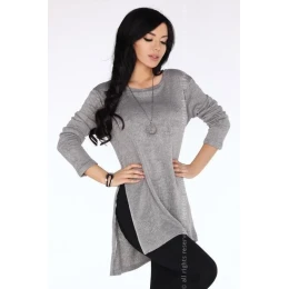 Táto zaujímavá tunika je vyrobená z mäkkého, elastického úpletu a možno ju použiť ako blúzku, tuniku alebo sveter. Má jemnú sivú farbu a jednoduchý strih, ktorý zdobia dva posuvné zipsy na oboch stranách tuniky. Môžete ich ľubovoľne rozopnúť a stále vytvárať nový vzhľad. Zloženie: 85 % polyester, 15 % bavlna.