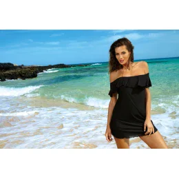 Veľmi ženský overal s jemným výstrihom. Môžete ho nosiť padajúci na jedno alebo obe ramená, v každom prípade vyzerá krásne. Overal je elastický pre dokonalé prispôsobenie. Volánik je plážový trend inšpirovaný horúcim kubánskym štýlom. Látka je elastická, mäkká a príjemná na dotyk, so zmyselným efektom miernej priehľadnosti. Overal je k dispozícii v niekoľkých krásnych plážových farbách.
