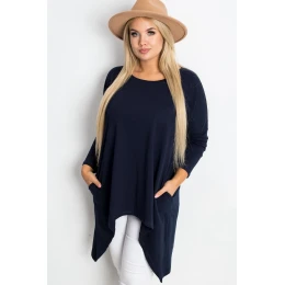 Dámska blúzka plus size má pohodlný a štýlový dizajn, ktorý je ideálny na každodenné ležérne outfity. Je vyrobená z kvalitnej bavlny s prídavkom elastanu, je mäkká, elastická a príjemná na pokožku, čo zaručuje pohodlie počas celého dňa. Hladký materiál jej dodáva univerzálny charakter a umožňuje ju ľahko kombinovať s rôznymi kúskami šatníka. Model je výrazný svojím predĺženým strihom a asymetrickým lemom, ktorý jemne zoštíhľuje postavu a dodáva moderný štýl. Konštrukcia bez gombíkov zdôrazňuje voľný strih blúzky a praktické vrecká ukryté v bočných švoch zvyšujú jej funkčnosť. Je skvelou voľbou na každý deň do práce, na prechádzku alebo stretnutie v neformálnom kruhu, pričom spája pohodlie s módnym vzhľadom.