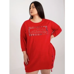Červené plus size teplákové šaty s nápisom.