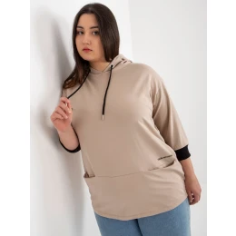 Tmavobéžová plus size mikina s vreckami.