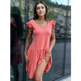 Dámske koralové bavlnené šaty s volánom MAYFLIES .