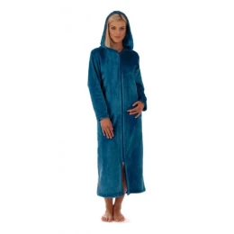 Unisex župan SIENA dlhý s kapucňou a zipsom 3656 6430 petrol - Vestis