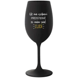 UŽ MA NEBAVÍ PREDSTIERAŤ, ŽE MÁM RÁD ĽUDÍ - čierny pohár na víno 350 ml