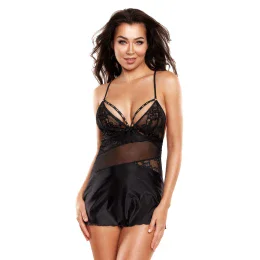 Objavte svoju dravú stránku v našej veľkolepej čiernej košieľke s ozdobnými pruhmi vo výstrihu. Každá má doplnky v zlatej farbe, ktoré zvýraznia vaše telo. Celá je vyrobená z veľmi jemného a elastického mikrovlákna, s čipkovanými vsadkami. Obvod okolo pŕs je na vhodnom páse, ramienka sa vzadu krížia, nie sú odnímateľné, ale nastaviteľné. Ku každej našej košieľke pridávame zadarmo nohavičky, elastické, z rovnakého materiálu, zdobené ornamentmi v zlatej farbe. Materiálové zloženie: Polyamid 82 %, Elastan 17 %, Bavlna 1 %