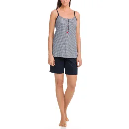 Dámske pyžamoTitania z hebkej bavlny so vzorom jemných kociek na tope a pohodlnými kraťasy, je to pravé pre pohodlný spánok.