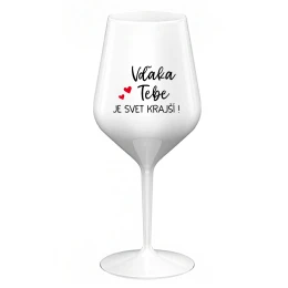 VĎAKA TEBE JE SVET KRAJŠÍ! - biely nerozbitný pohár na víno 470 ml