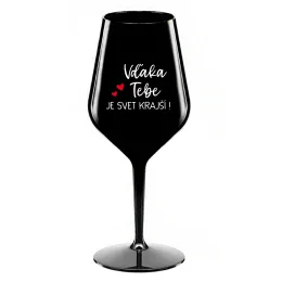 VĎAKA TEBE JE SVET KRAJŠÍ! - čierny nerozbitný pohár na víno 470 ml