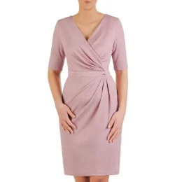 Priliehavé šaty s riasením vpredu. Prekrývajúci sa výstrih, v páse prestrihnutý. Šaty majú skrytý zips.