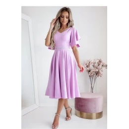 Tieto elegantné šaty v odtieni ľalie sú ideálnou voľbou na výnimočné udalosti. Sú vyrobené z kvalitného materiálu, dokonale sa prispôsobia postave a zvýraznia jej prednosti. Model má výstrih do V, ktorý jemne zvýrazňuje krk a kľúčne kosti. Rukávy s voľným nariaseným strihom dodávajú šatám ľahký a romantický charakter. Pás je zvýraznený ozdobným opaskom s jemným zdobením, ktorý krásne podčiarkuje postavu. Rozšírený spodný lem dodáva kreácii ľahkosť a eleganciu. Šaty sa zapínajú na skrytý zips, ktorý zaručuje pohodlie pri nosení a ideálne padnutie. Sú ideálne na svadby, recepcie, krstiny a iné elegantné udalosti.