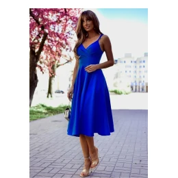 7/8 šaty bez ramienok s hlbokým krížovým výstrihom, strih pod prsiami. Spodná časť je kvetovaná. Ideálne na mnohé príležitosti.