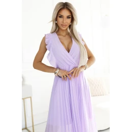 Objavte jedinečnú eleganciu šiat Emily z limitovanej edície! Plisovaný, ľahký šifón krásne sedí na postave, čím jej dodáva ľahkosť a jemný pôvab. Jemné volániky a ženský výstrih dodávajú stylingu romantický nádych a skrytý zips na chrbte zaručuje ideálne prispôsobenie. Levanduľová farba podčiarkuje jedinečnosť tohto modelu, takže je skvelou voľbou na elegantné výlety, večierky alebo špeciálne príležitosti.