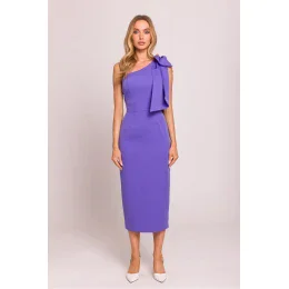 Elegantné midi šaty v ceruzkovom strihu, ktorý zdôrazňuje ženskú siluetu. Model očarí asymetrickým strihom s motívom jedného ramena, zdobeným efektnou mašľou, ktorá dodáva eleganciu a jedinečný charakter. Vysoké rozparky na chrbte jemne odhaľujú nohu, čím dodávajú kreácii ľahkosť a zmyselnosť. Šaty sa na bokoch zapínajú na skrytý zips, ktorý zaručuje ideálne prispôsobenie. Čiastočná podšívka zaručuje pohodlie počas nosenia. Navrhnuté a ušité v Poľsku s dôrazom na každý detail.