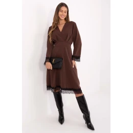 Elegantní rozkročené šaty, které spojují eleganci s jemným ženským půvabem. Vyrobené z vysoce kvalitní směsi polyesteru a viskózy, jsou příjemné na dotek, prodyšné a skvěle padnou na postavu. Model s midi délkou a záhybovým výstřihem krásně zdůrazňuje postavu, zatímco rozkrokovaný střih dodává lehkost a volnost. Dlouhé rukávy a krajkové detaily na manžetách a na spodku šatů dodávají celku jemnost a eleganci. Vsazené gumy na pasu vzadu zajistí ideální přizpůsobení a pohodlí nošení, zároveň zdůrazňují pas. Šaty nemají zapínání, což je činí mimořádně pohodlnými při oblékání. Jedná se o skvělou volbu jak pro každodenní nošení do práce, tak i na formálnější události, kdy chcete vypadat elegantně a cítit se volně.