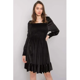 Čierne velúrové šaty s volánom a dlhými rukávmi. Ideálne na mnohé príležitosti. Na chrbte sú všité elastické pásy, ktoré uľahčujú obliekanie.