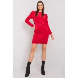 Červené velúrové šaty s dlhými rukávmi. Záhyby na ramenách. Skvele sa hodí na mnoho príležitostí.
