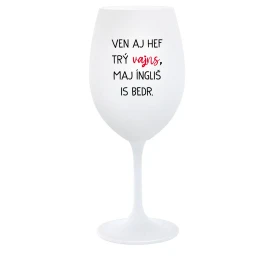 VEN AJ HEF TRÝ VAJNS, MAJ ÍNGLIŠ IS BEDR. - bílá sklenice na víno 350 ml