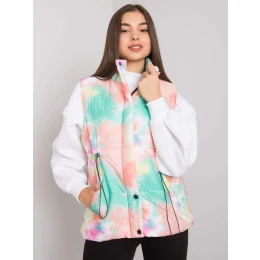 Zeleno-oranžová vesta bez kapucne.