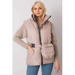 Béžová páperová vesta s podšívkou a zipsom. Vesta s vreckami, vrátane opasku.