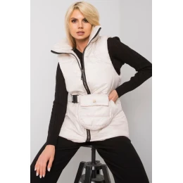 Perová vesta vo farbe ecru, podšitá, so zipsom. Vesta s vreckami, vrátane opasku.